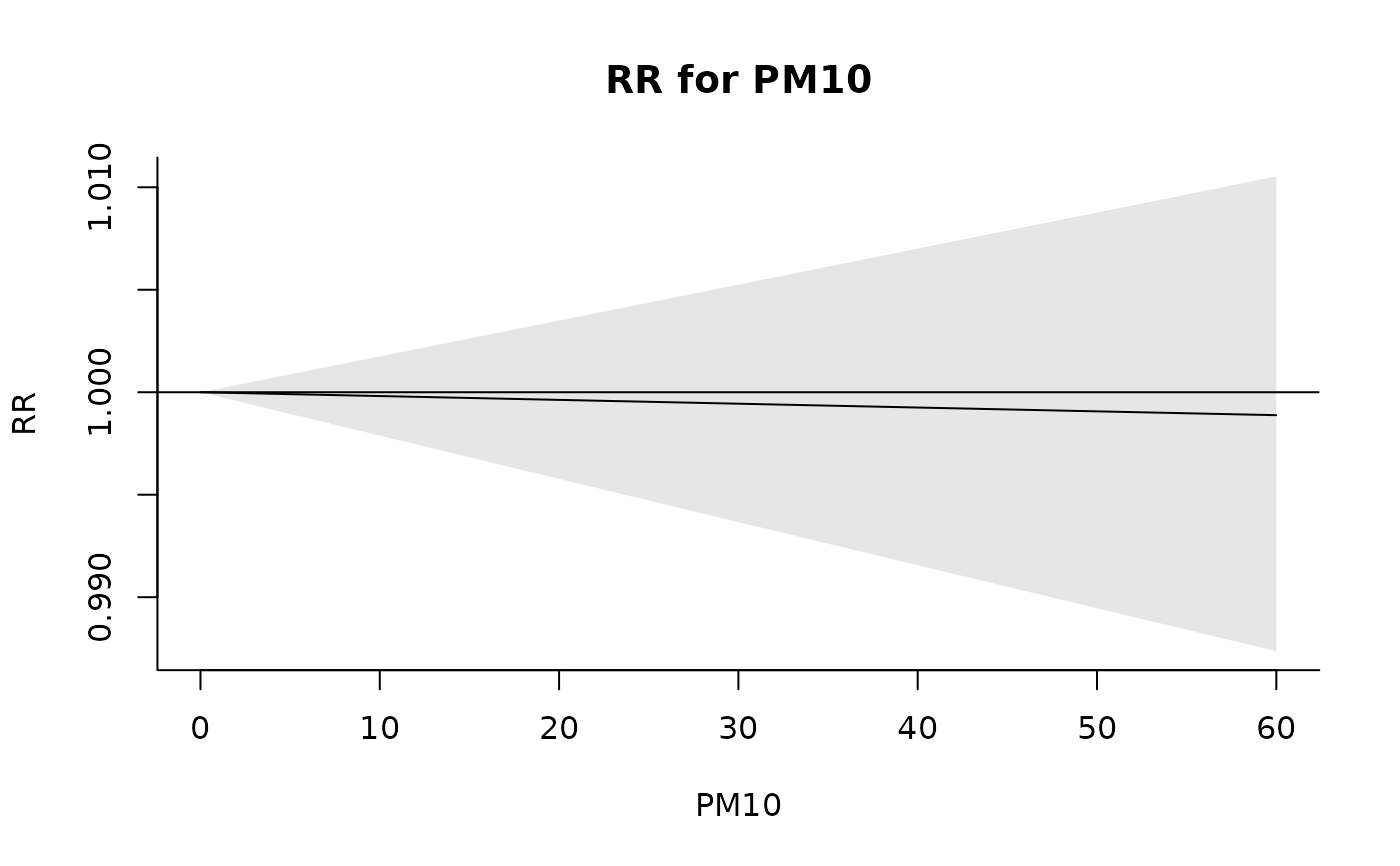 plot(pred, xlab="PM10", ylab="RR", main="RR for PM10")